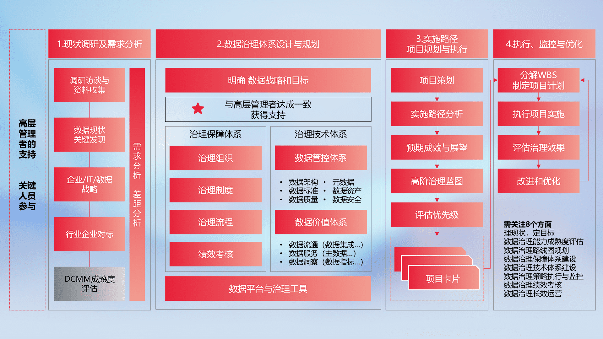 制定并执行统一的数据标准,,,规范数据定义和格式,,,消除冗余和不一致性,,,,实现跨部门和跨系统的数据一致性,,为企业提供标准化的数据基础。。。。